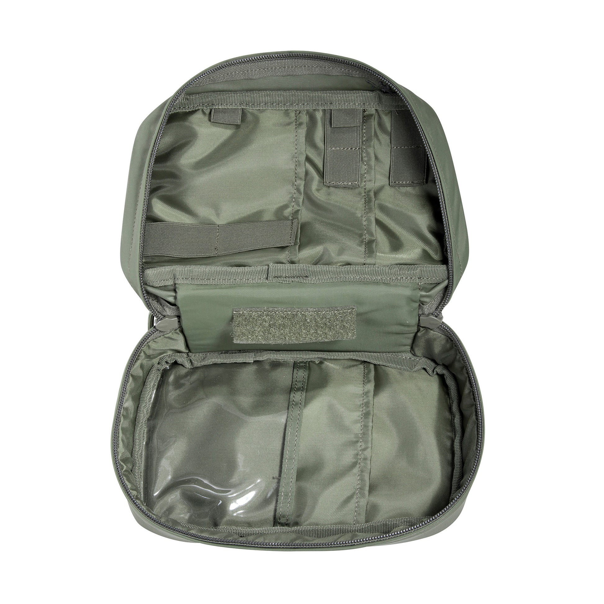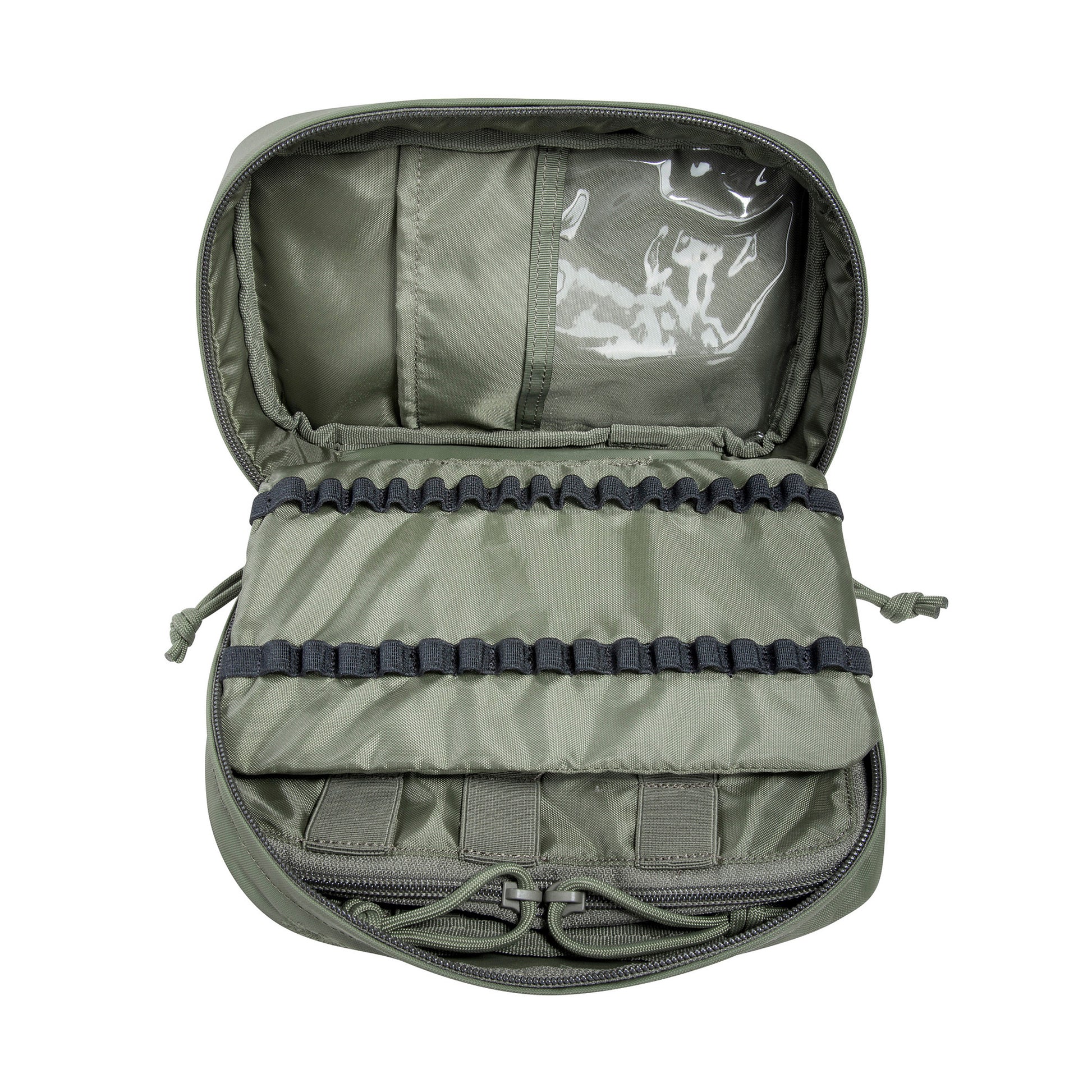 Die TT Rescue Pouch eignet sich für den sicheren Transport von medizinischen Ampullen über ein Schlaufensystem und bietet Organisationsmöglichkeiten für weitere medizinische Ausrüstung. Auf der Front befindet sich ein Klarsichtfach, z.B. für die Inhaltsliste. Die Rückseite ist zum Einkletten in Rucksäcke mit Hakenklett versehen (Abdeck-Klett vorhanden).