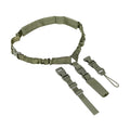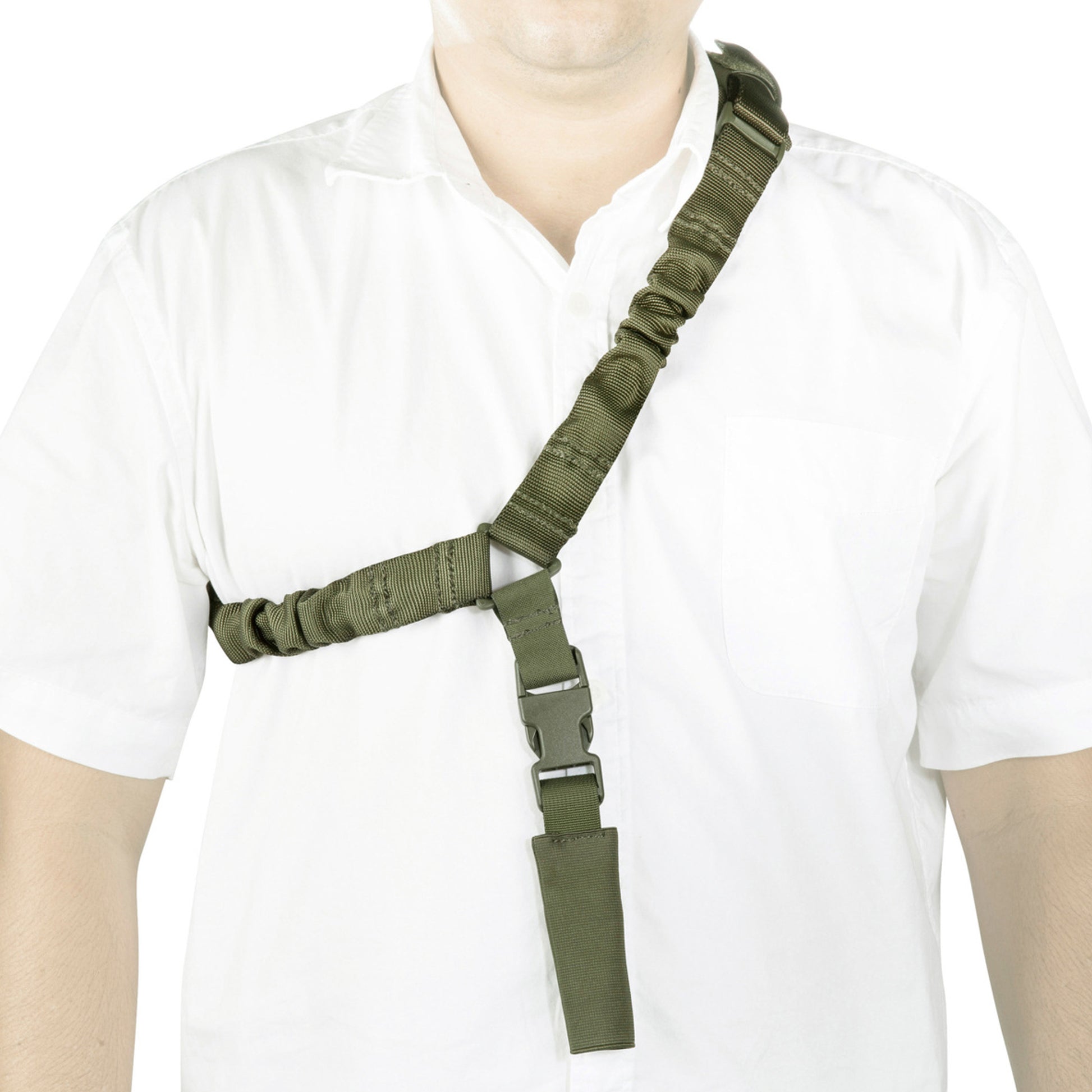 Der Tasmanian Tiger TT Single Multipurpose Sling ist ein gepolsterter Single-Trageriemen mit verschiedenen Befestigungsoptionen. Per Steckschließe kann entweder ein Waffenhaken, ein Band für Riemenösen oder eine 3-mm-Reepschnur für Kameras (2 Strings à 3 mm Durchmesser) angebracht werden. Die maximale Belastung der Kameraaufhängung beträgt 85 Kilogramm, und sie sollte ausgetauscht werden, wenn der innere weiße Kern sichtbar wird.