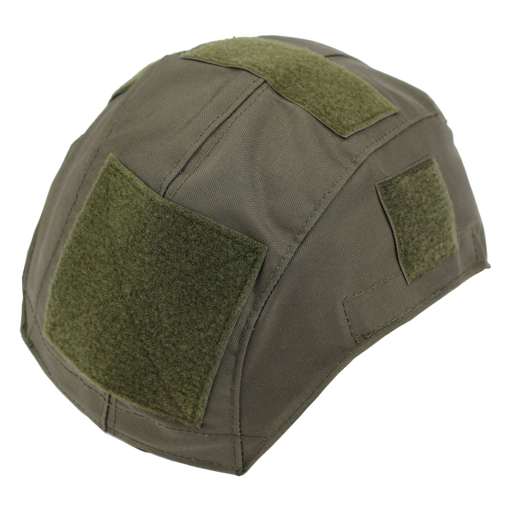 Der Helmbezug wird mittels Klettstreifen an dem Gefechtshelm befestigt. Dieser wird zuvor mit selbstklebenden Klettstreifen bestückt, die im Lieferumfang des Helmbezuges enthalten sind.